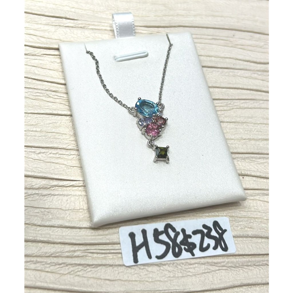 H58 S925托帕x坦桑x碧璽頸鏈$238