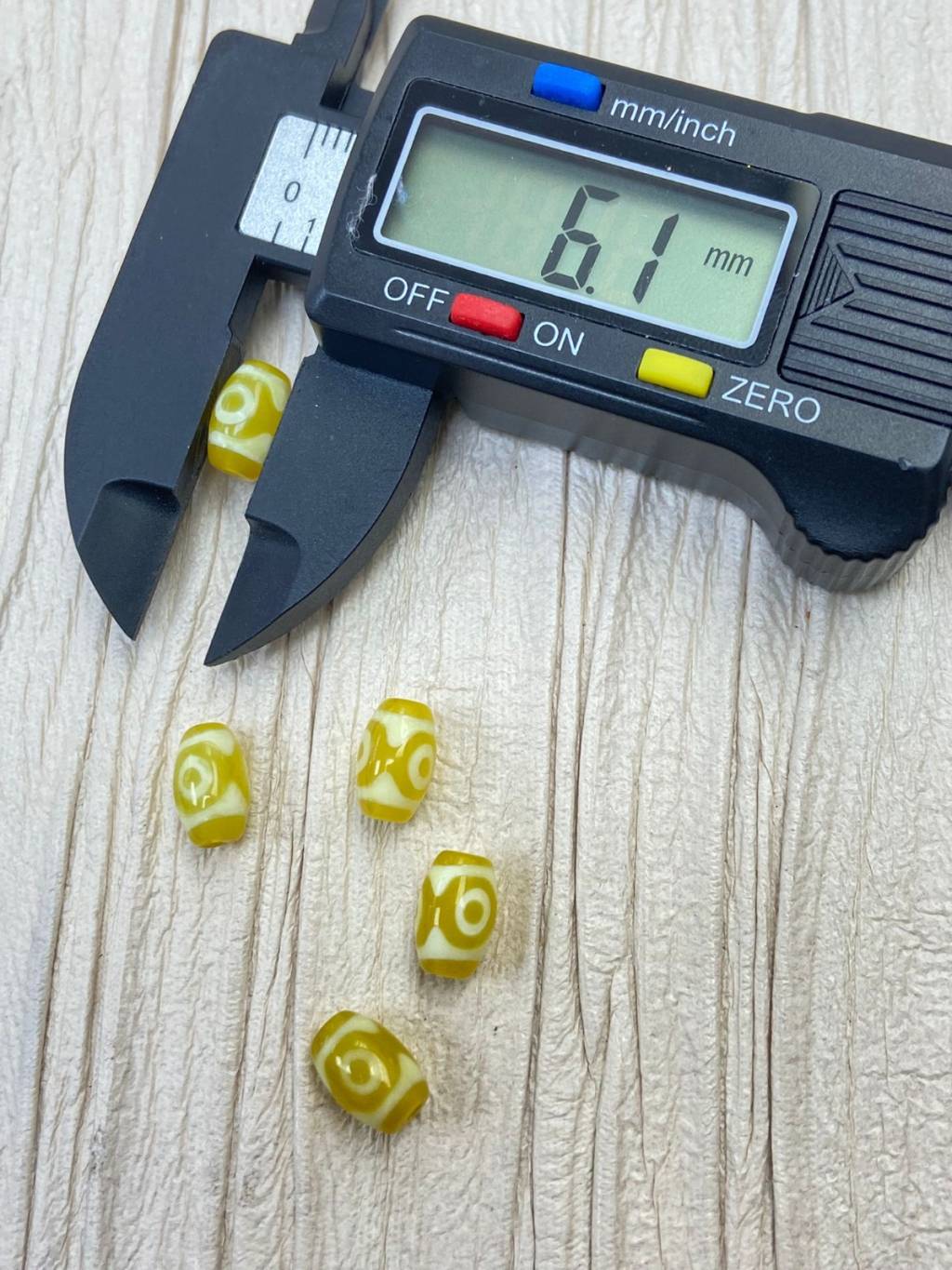 J2 黃瑪瑙三眼桶珠天珠 6MM+ $29/5粒