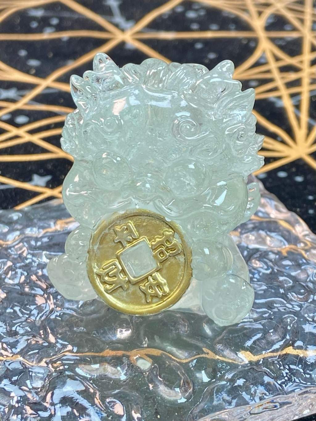 T207 綠水晶滴膠吞金獸擺件