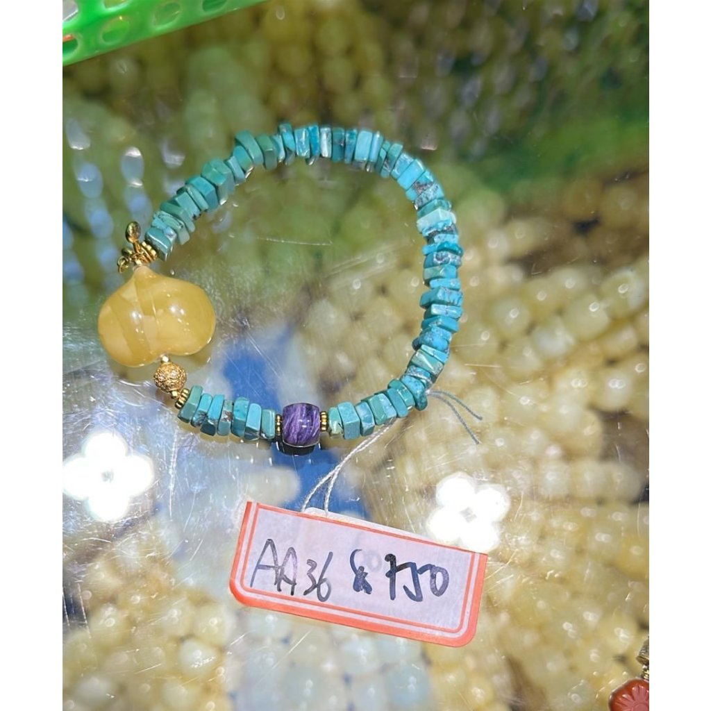 主頁 AA36 綠松蜜蠟紫龍設計款手串$750