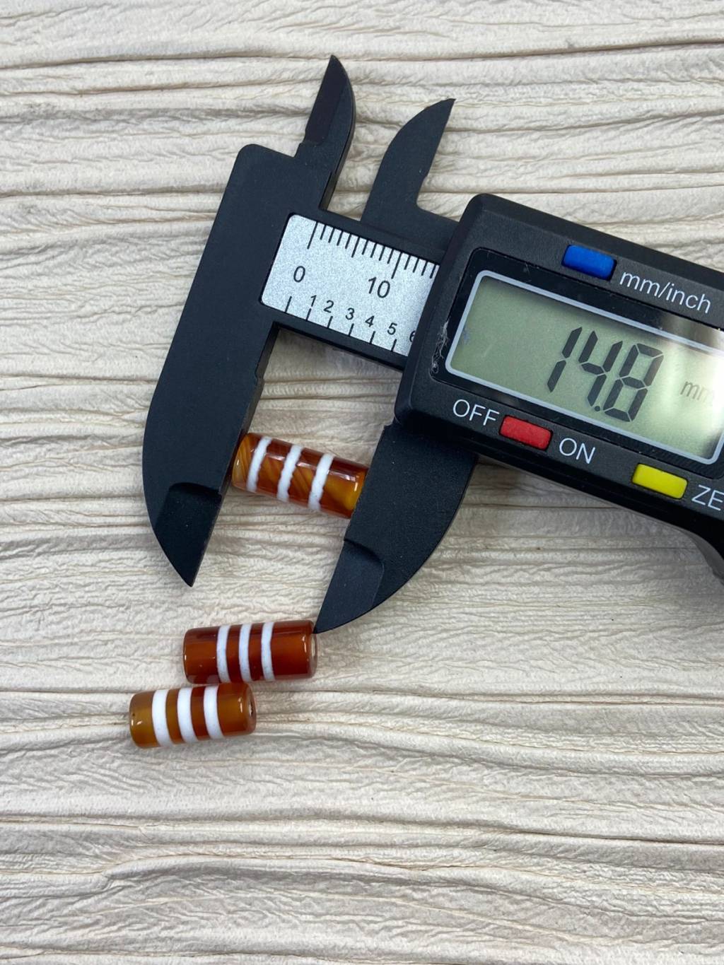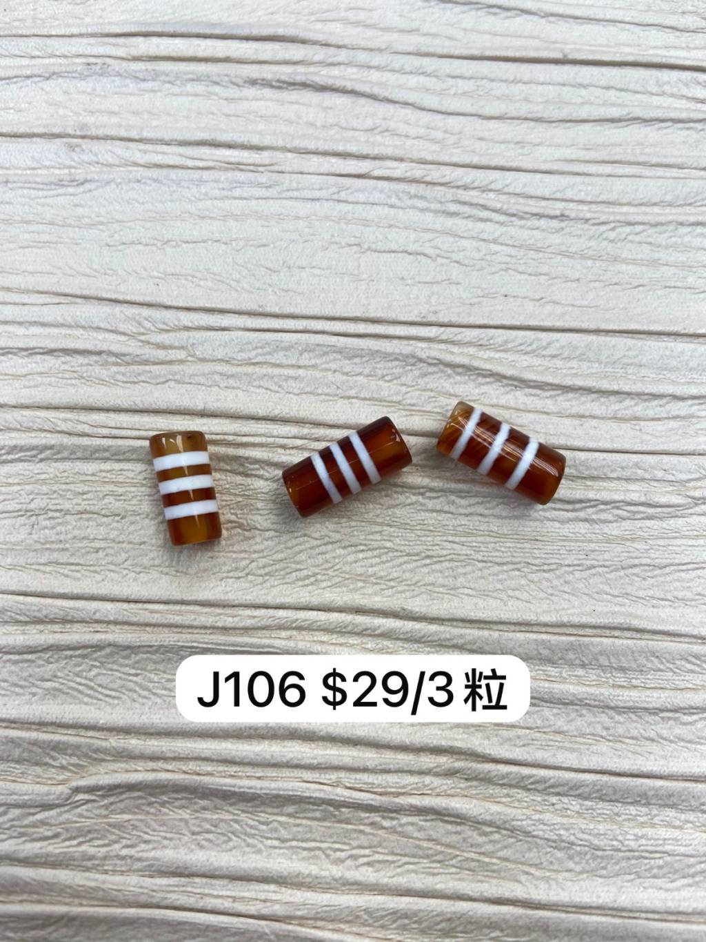 J106-訂* (紅)三線桶珠天珠$29/3粒