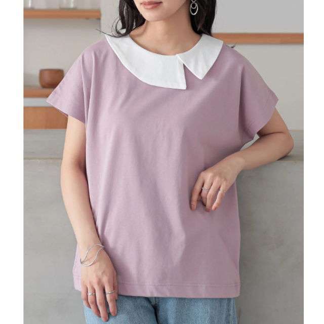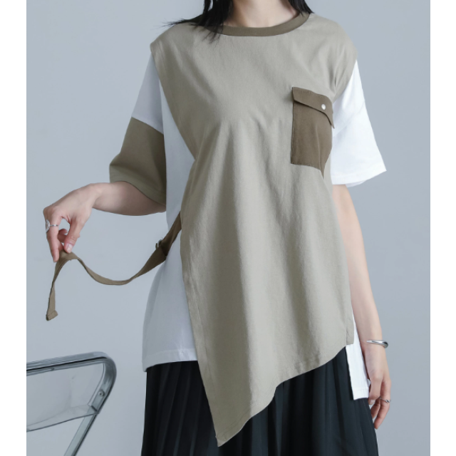 ⭐接触冷感 不對稱配色領上衣⭐