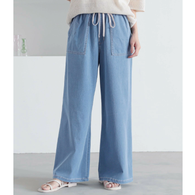 ⭐接触冷感 防紫外線 薄款寬牛仔褲⭐