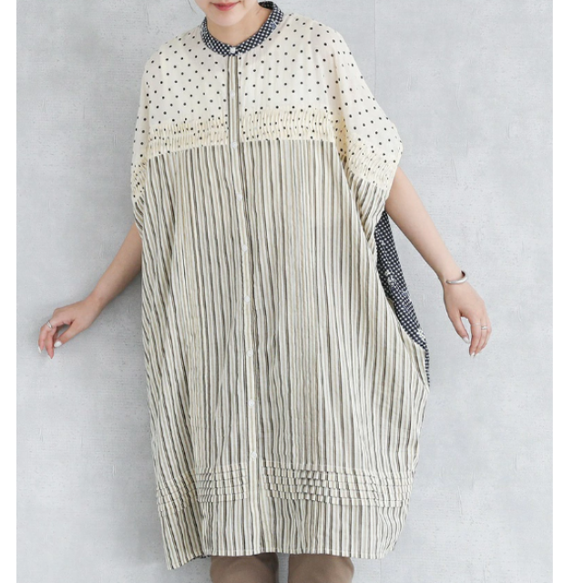 ⭐100%棉 花卉圓點條紋拼接上衣⭐