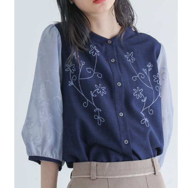 ⭐花卉刺繡異素材上衣⭐